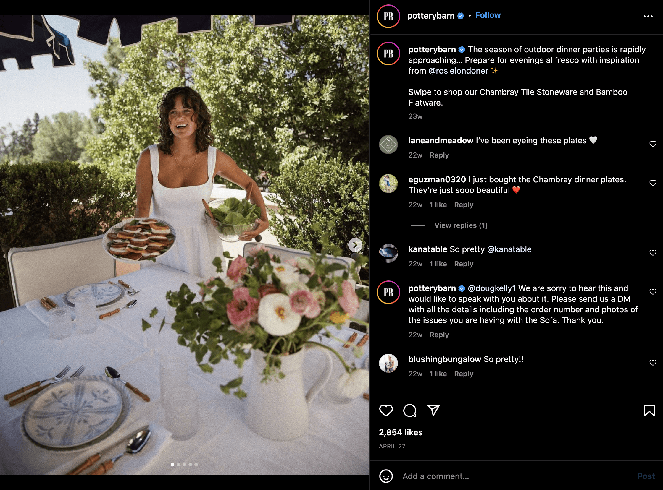 The brand can track the pictures quickly and choose the best shots for the Pottery Barn Instagram feed. That's free and effortless advertising supplied by social network active users.