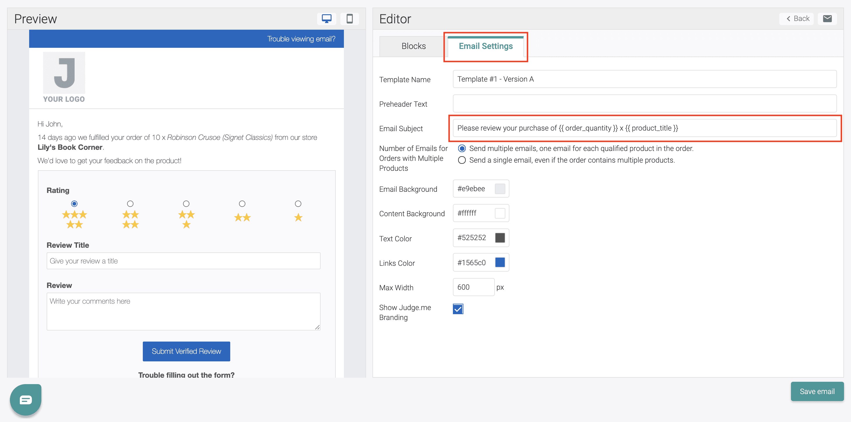 How to customize your email subjects with the Judge.me email editor