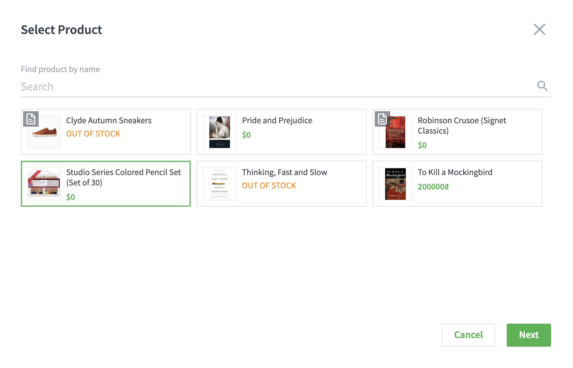 If you are creating a new Product Page, select the relevant product and click "Next."