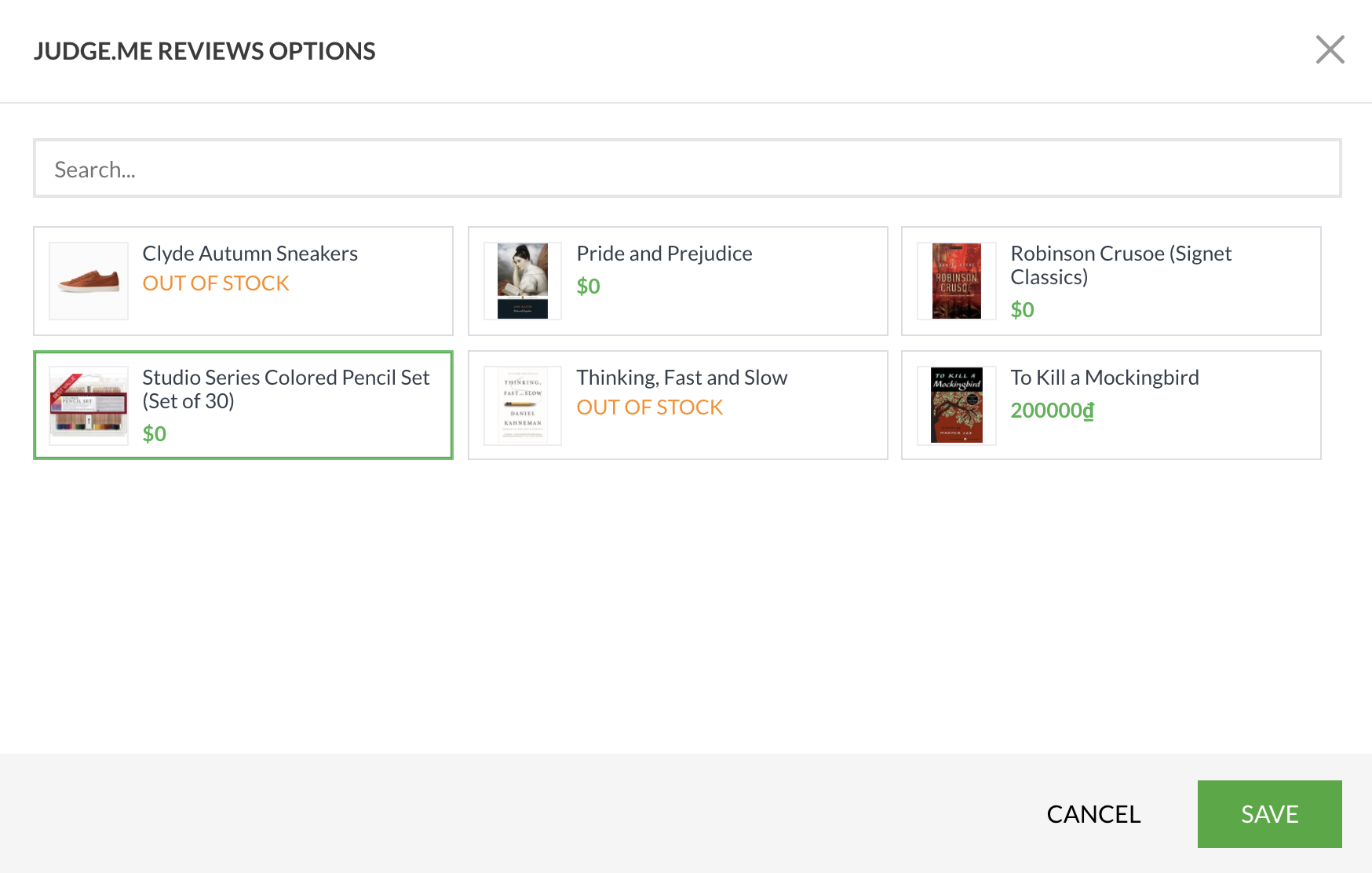 Choose the specific product you wish to display reviews for. Once you publish your page, Zipify will replace this placeholder with the actual Judge.me Review Widget.