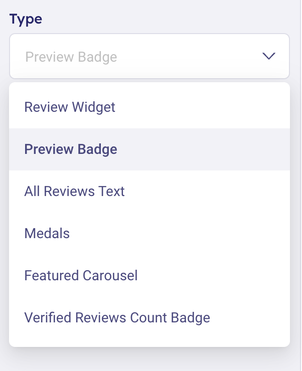 Choose the desired widget from the available options in the Type.