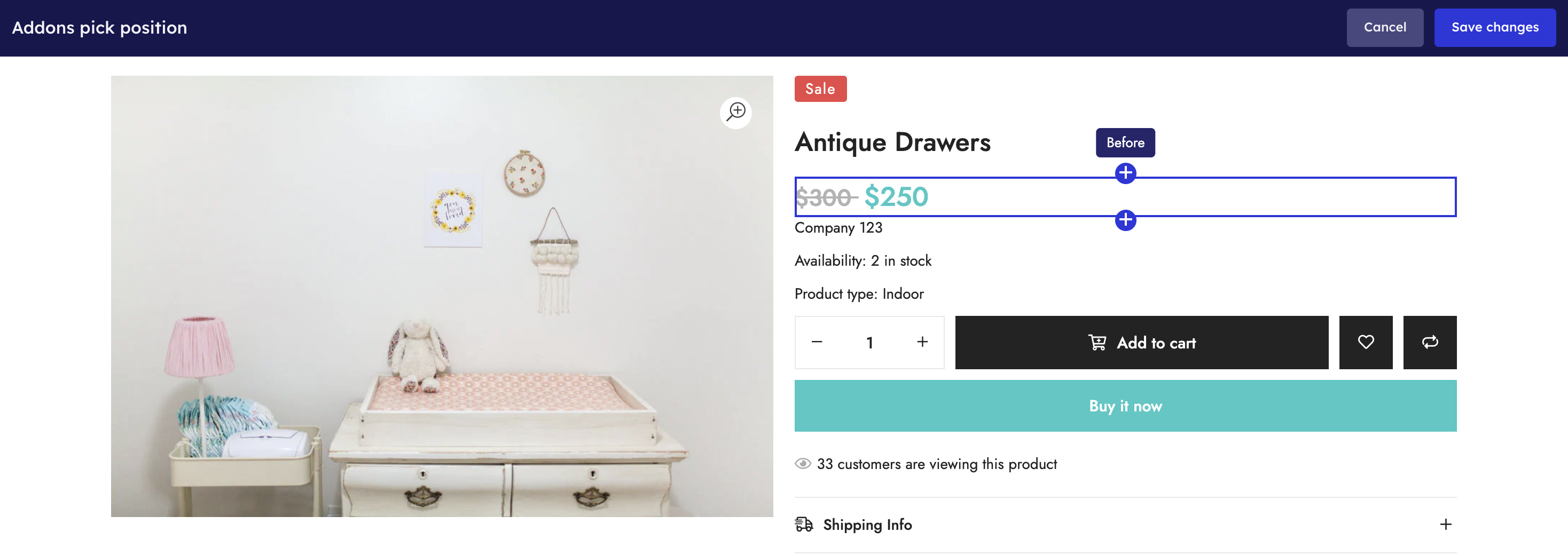 Click on Add addons to place the widget in your chosen location.