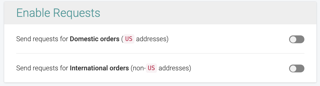 Toggle the bar to turn off requests for domestic orders, international orders, or both.
