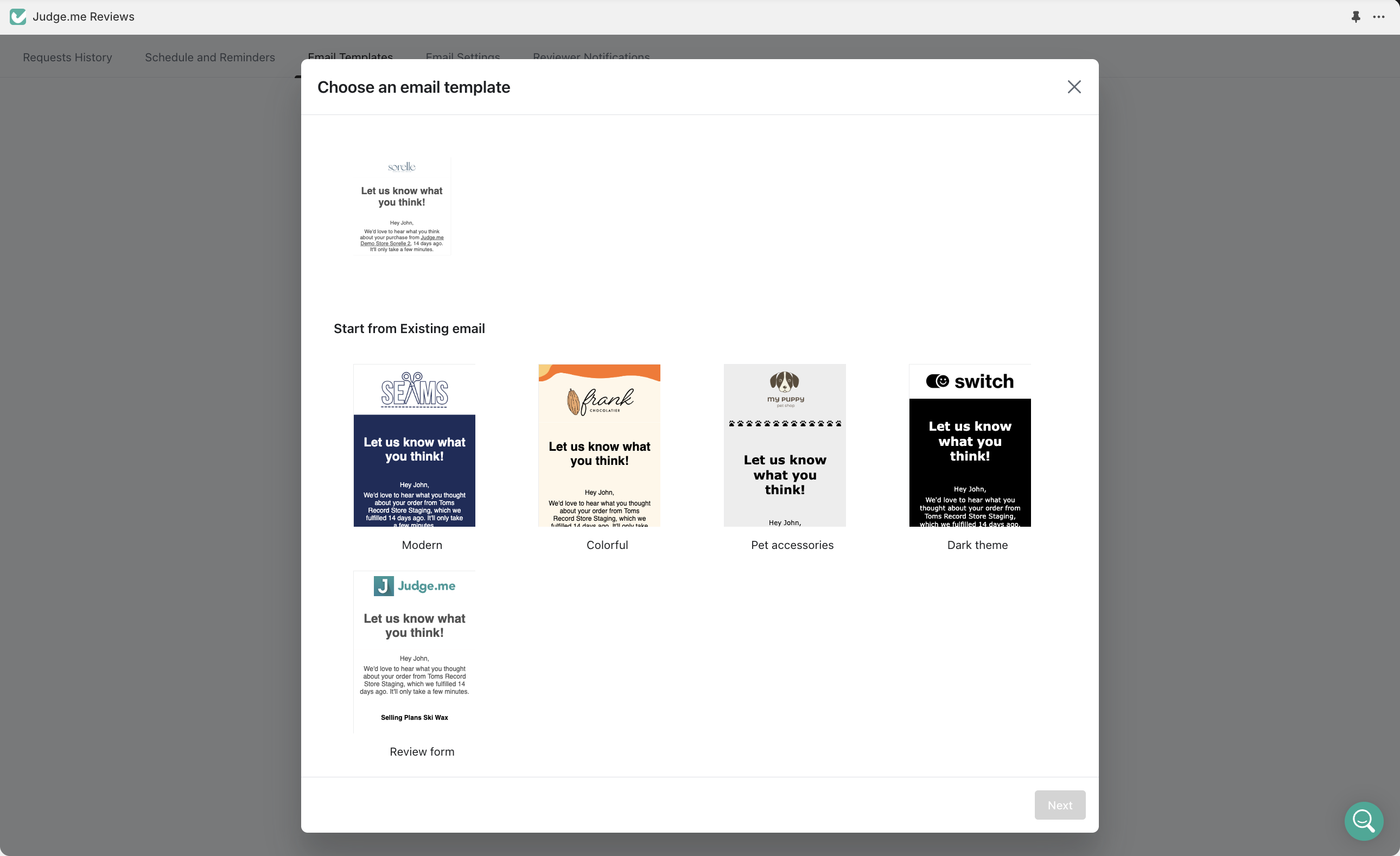 From your Judge.me admin, go to Collect Reviews > Email Templates.