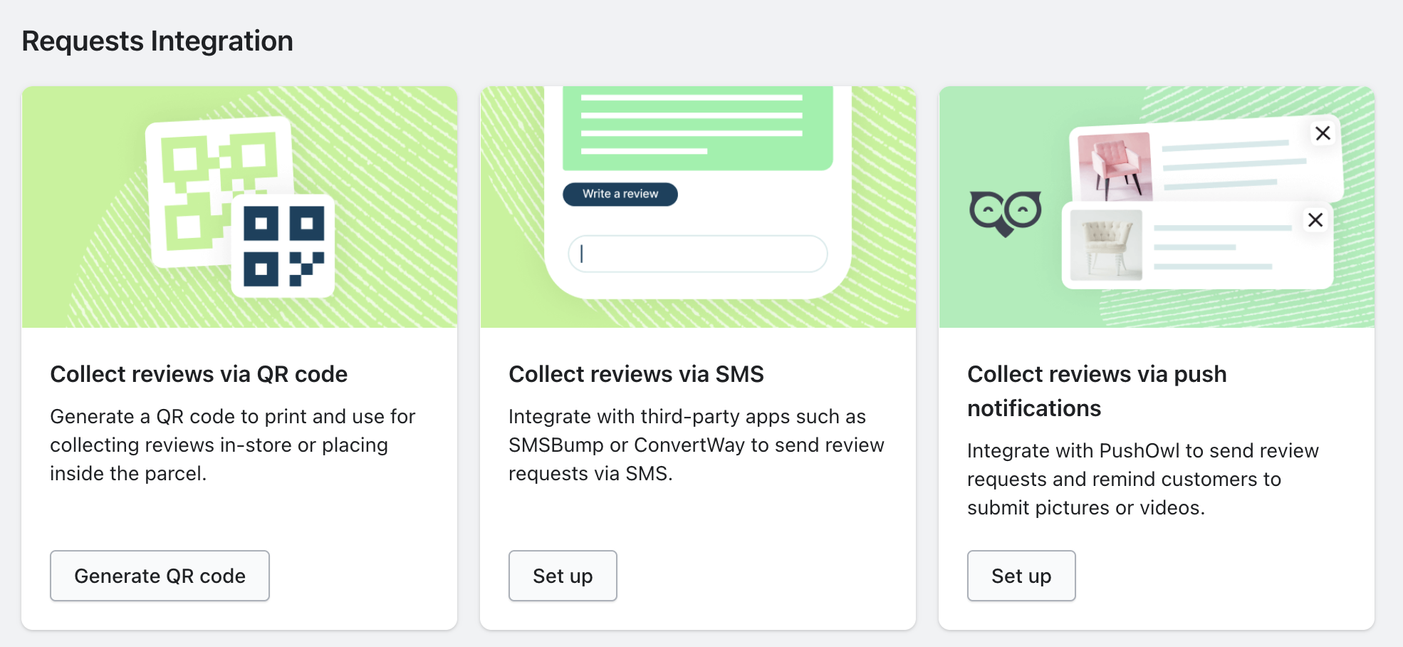 Judge.me helps you collect customer feedback by automatically sending review requests after each fulfilled order. Depending on your integrations and settings, these requests can be sent via emails, SMS, push notifications, or QR codes.