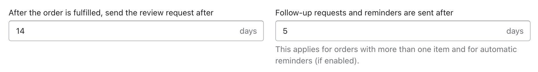 You can schedule automatic review requests to be sent 0–60 days after an order is fulfilled. Well-timed requests help you collect better reviews by reaching customers when their experience is still fresh.