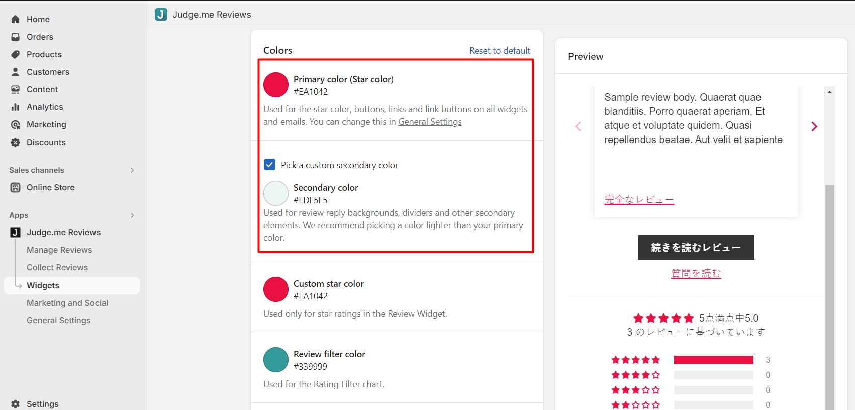 This setting will update the star color for Judge.me widgets. If you want to set a different color for the Star Ratings stars, please choose the color in Custom star color.