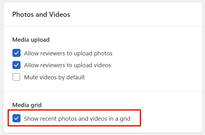 Refer to the section labeled Photos and Videos > Media grid > Select "Show recent photos and videos in a grid".