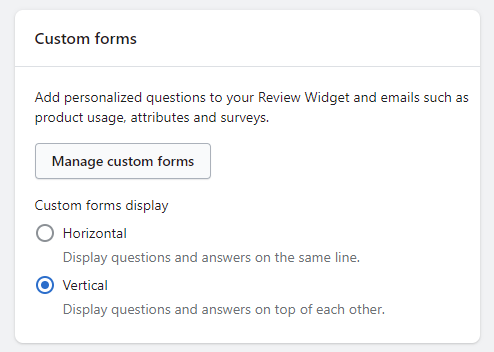 We've added a new question type called Slider, where users can drag the scale to choose the value. You can create custom forms in Widget > Review widget > Manage > Custom forms > Managed custom forms or go to Custom Forms. Learn more about custom forms here.