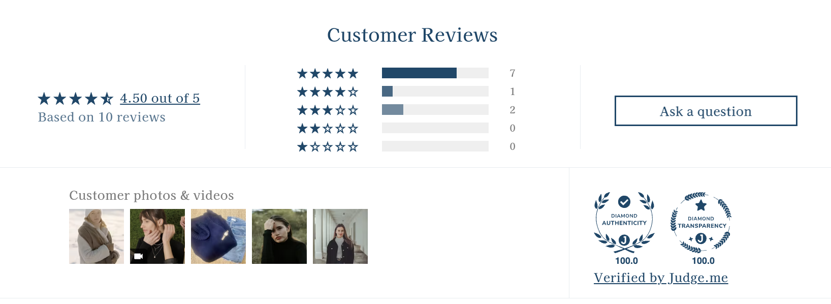 You can also display Judge.me Medals on the Review Widget, All Reviews Page, and Floating Reviews Tab.