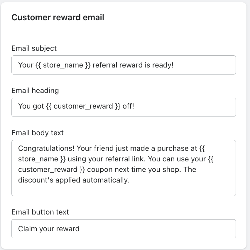 Note: Customer reward emails are only sent after the friend’s order is fulfilled in Shopify.