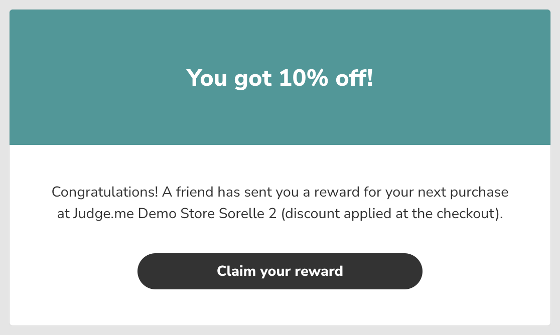 When their friend clicks the referral link, they land on a "Congratulations" page and are prompted to click Claim your reward to get a discount.