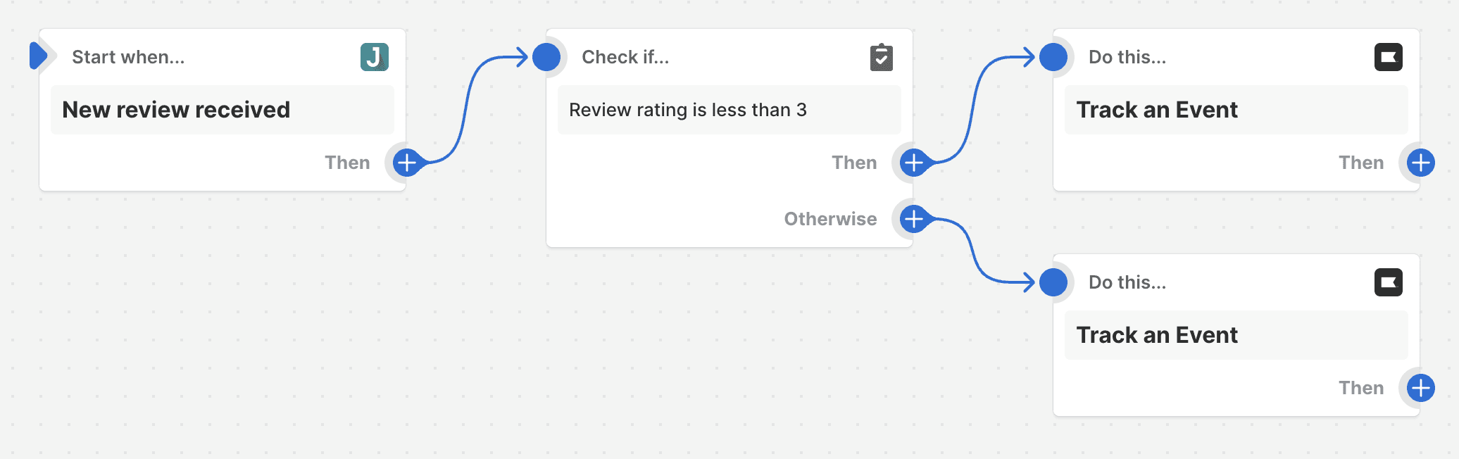 That event can then trigger a follow-up email to send to that customers. You can choose to send different emails for different events based on the rating your customer gives you.