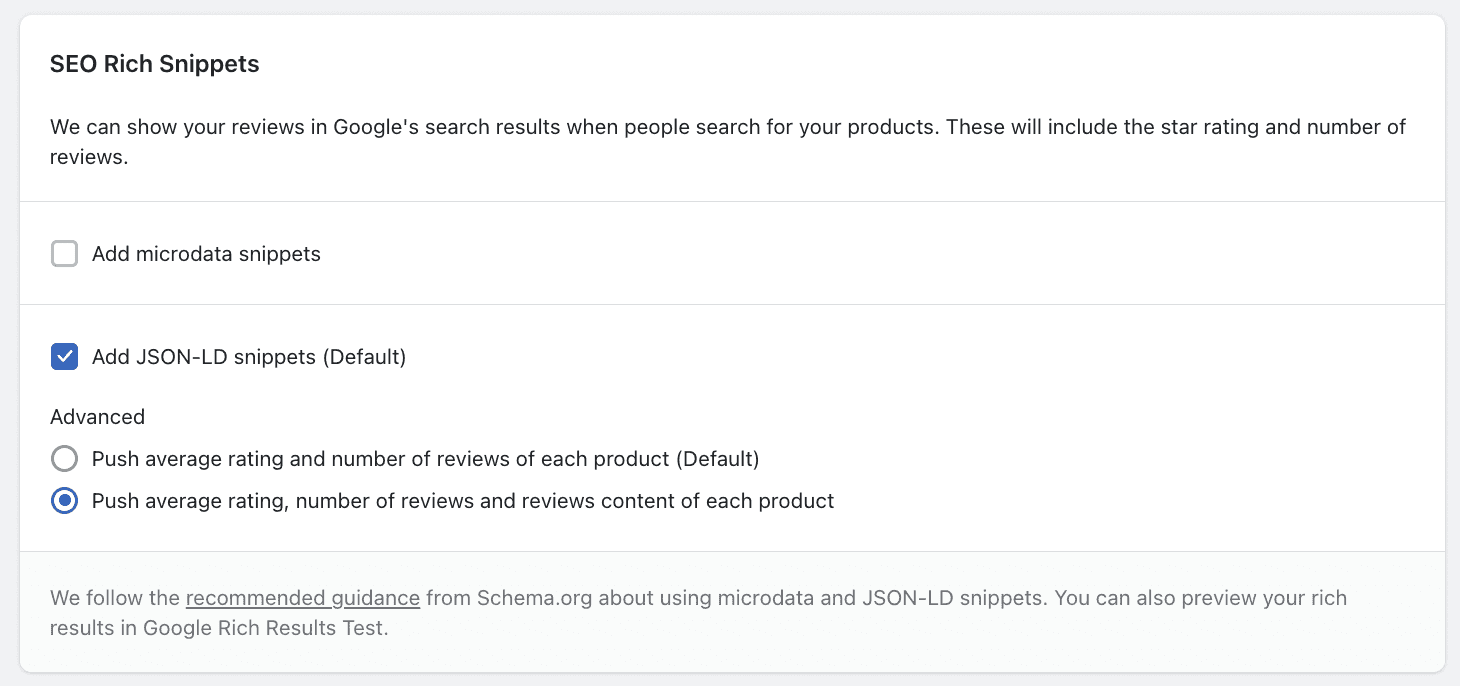 But for users on the Awesome plan, you can also push the review content so your store has a better chance of being ranked higher on Google and other search engines.