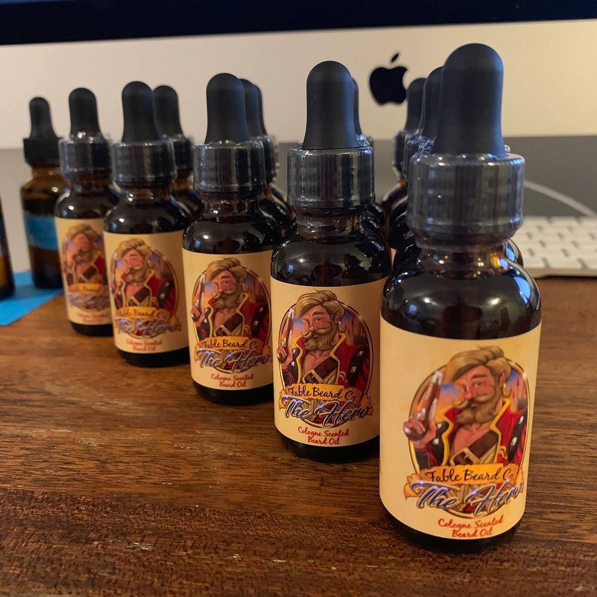 Each of Fable Beard Co.’s product lines is named after a character archetype. If you’re not a nerd like me and Collin, an archetype is merely a typical character. In this case, the archetypes are the typical characters you’d see in most fantasy novels or games: the hero, the archer, the scribe, etcetera. Fable Beard Co. currently has 10 characters representing a wide range of product lines, from coffee scented beard oils to woodsy smelling axes waxes.