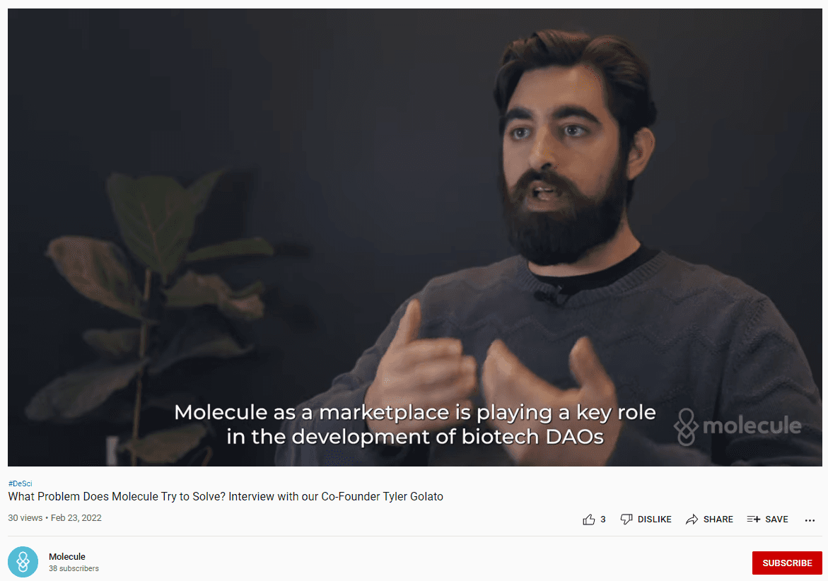For example, the founder of pharma startup Molecule sat down to discuss why Molecule was founded and how the company collaborates with patients and patient advocacy groups to help researchers develop cures for little-known diseases: