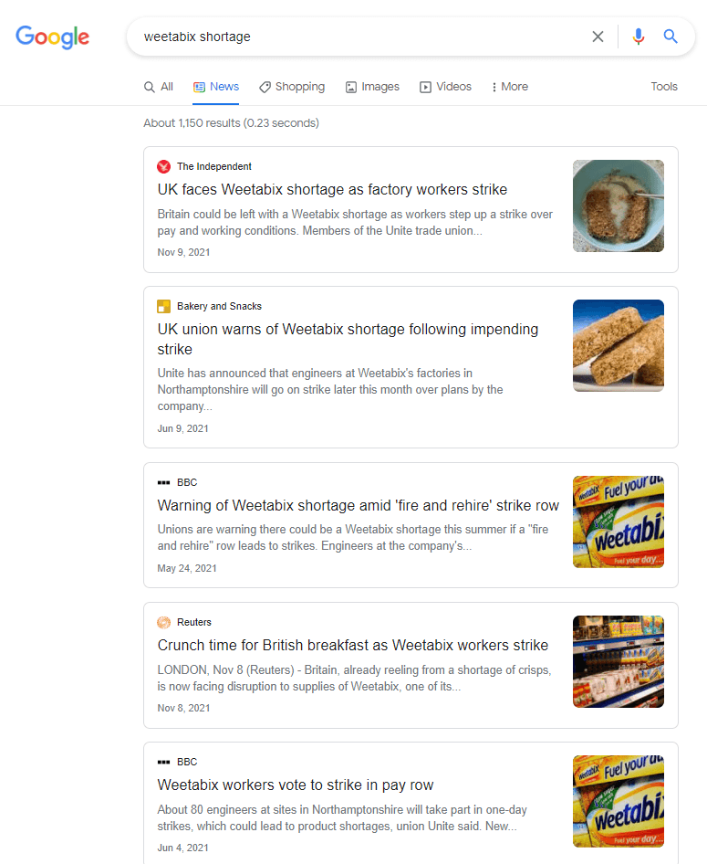 When workers went on strike at Weetabix, a popular breakfast cereal company, it resulted in massive product shortages. Naturally, consumers were unhappy about the news, and the shortage dominated news cycles for a month: