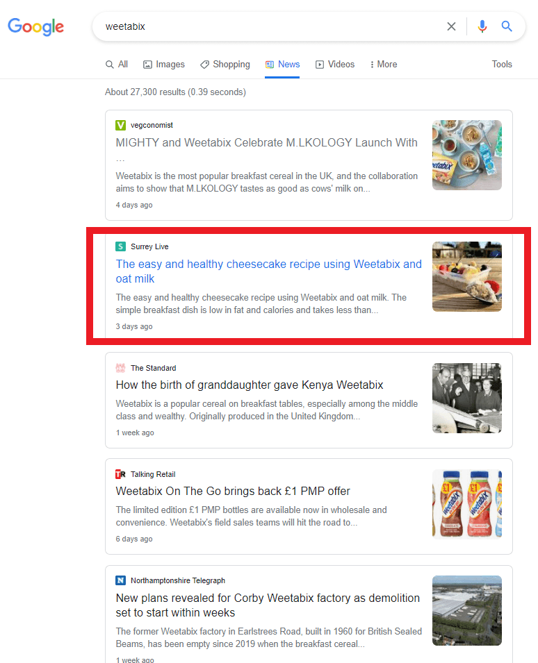 Thanks to well-timed influencer marketing, Weetabix shook off the negative PR coming from its shortage. Positive news now dominates the web searches for the brand.