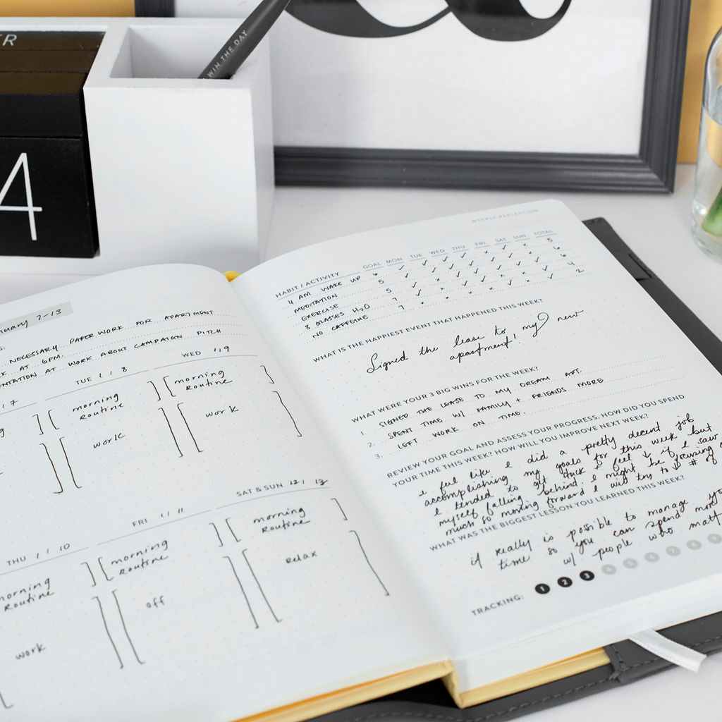 “They were both entrepreneurs and they both had their own businesses,” Jess explained to me. “They were attending conferences and reading all these productivity books. They had both crafted their own version of a DIY journal, a blank journal, to encompass all these different properties that they had seen in successful people, whether it was gratitude, planning their day, setting their targets, and reflecting at the end of the day. And then they were sitting down at coffee one day and looking at each other’s journals, and realized they were doing the exact same thing in each of their personal journals.”