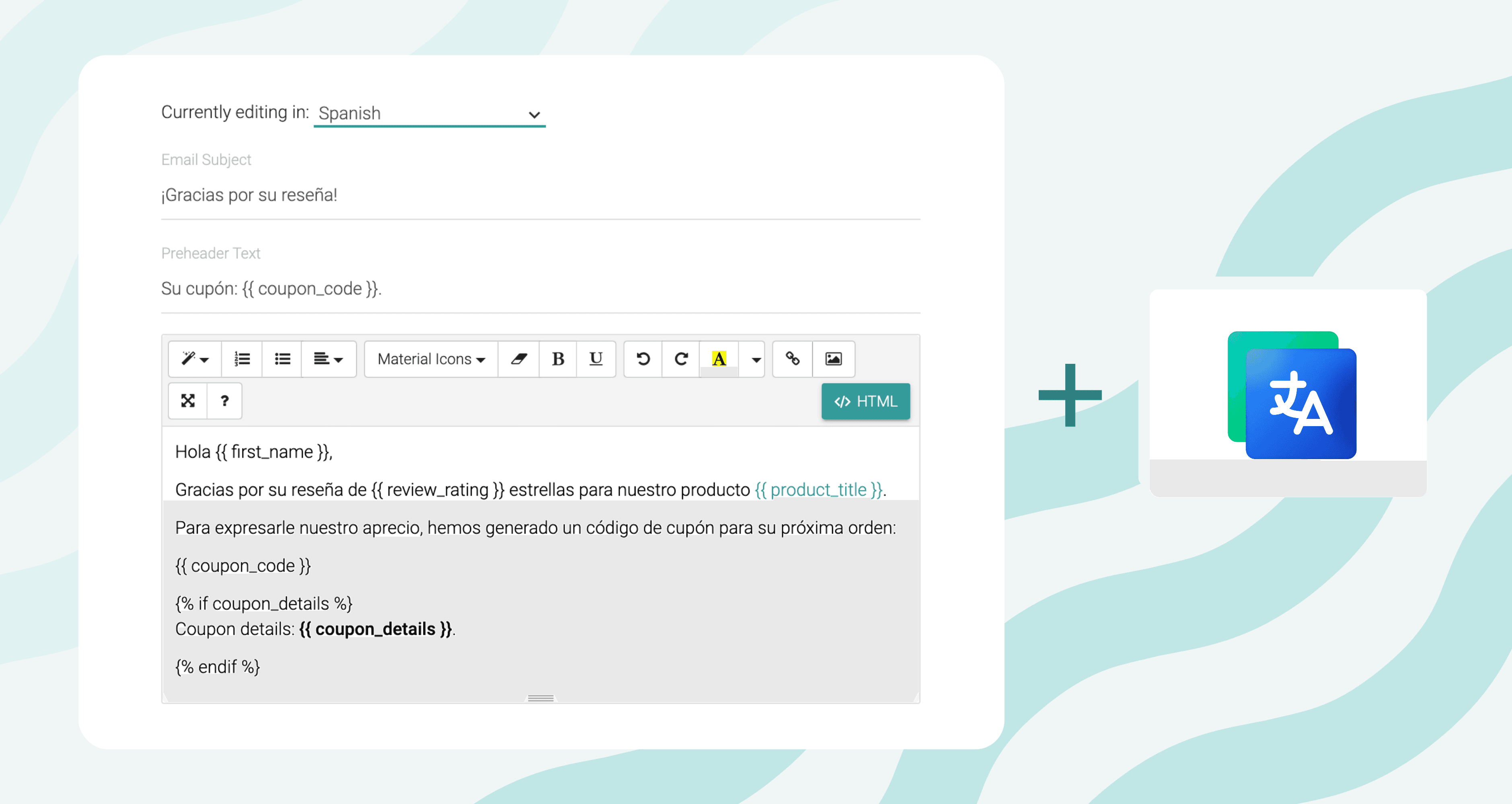 Our new multi-language coupon editor gives you the power to customize your coupons and send them to reviewers in the language the store was using when they made their purchase.