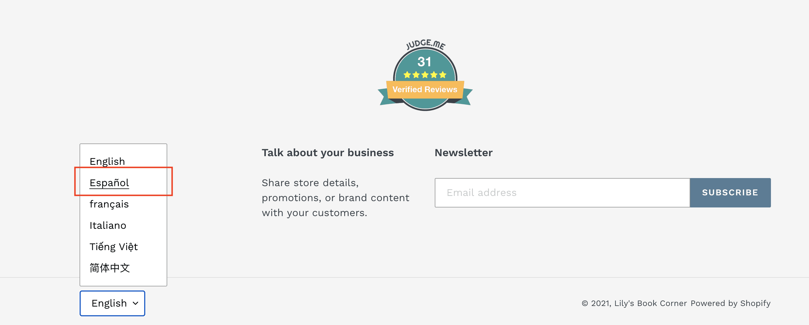 Follow this guide to add Published languages for your Shopify stores and enable Multiple language emails in Judge.me.
