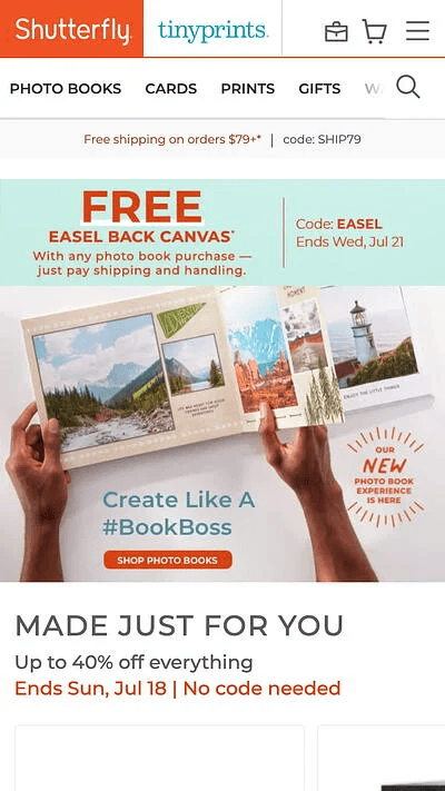 Shutterfly is an online service that helps users create personalized photo books, stationery, cards, etc. This brand has a well-designed, mobile-friendly website that makes it easy for users to navigate and find the information they need. The mobile site is highly visual and provides an intuitive user experience for both new visitors and existing customers.