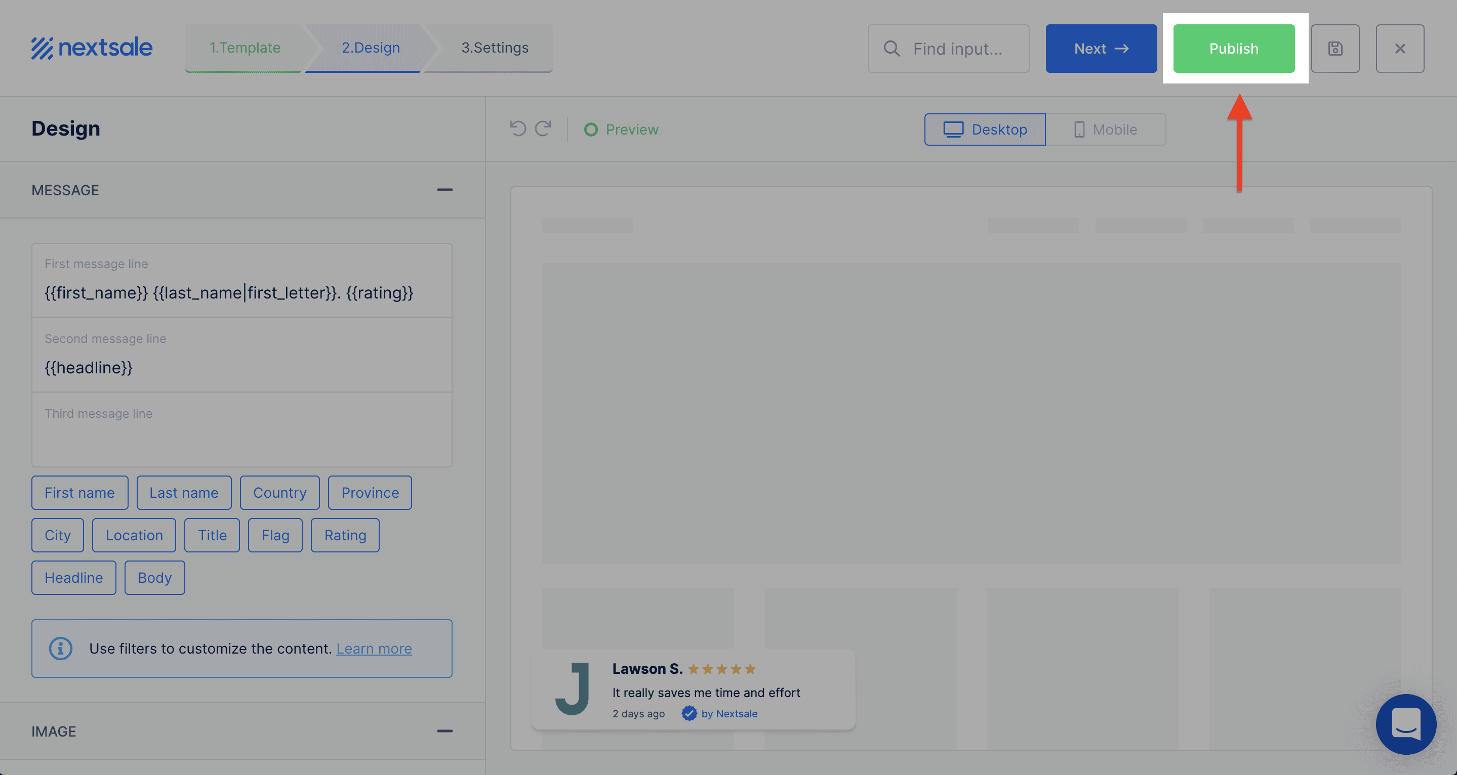 Next, follow the steps in Nextsale to customize the content, appearance, position, frequency and which pages to display the review notifications on your store.