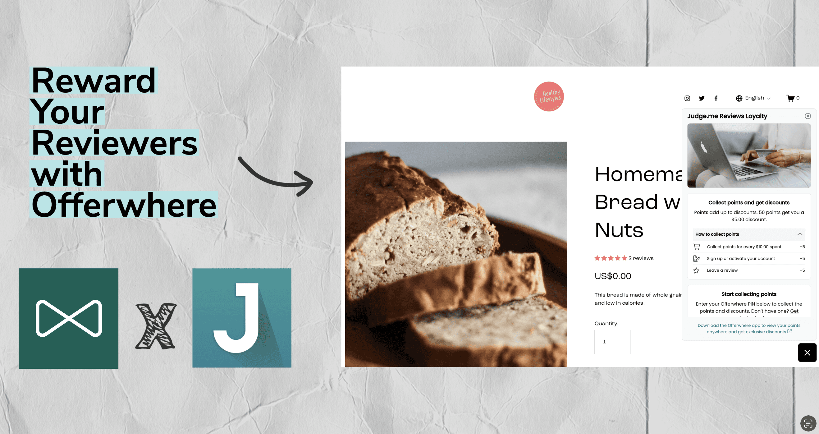 Now, thanks to our integration, you can give loyalty points to your customers whenever they submit a review via Judge.me. All you have to do is add a loyalty program through your Offerwhere account, choose to encourage customers to leave a review, connect the loyalty program to your Squarespace store, then connect the loyalty program to Judge.me. It means is that your customers can sign up for your loyalty program and collect points for leaving a review and making a purchase. Once they’ve collected enough loyalty points, they can request a discount code from you. It’s that simple.