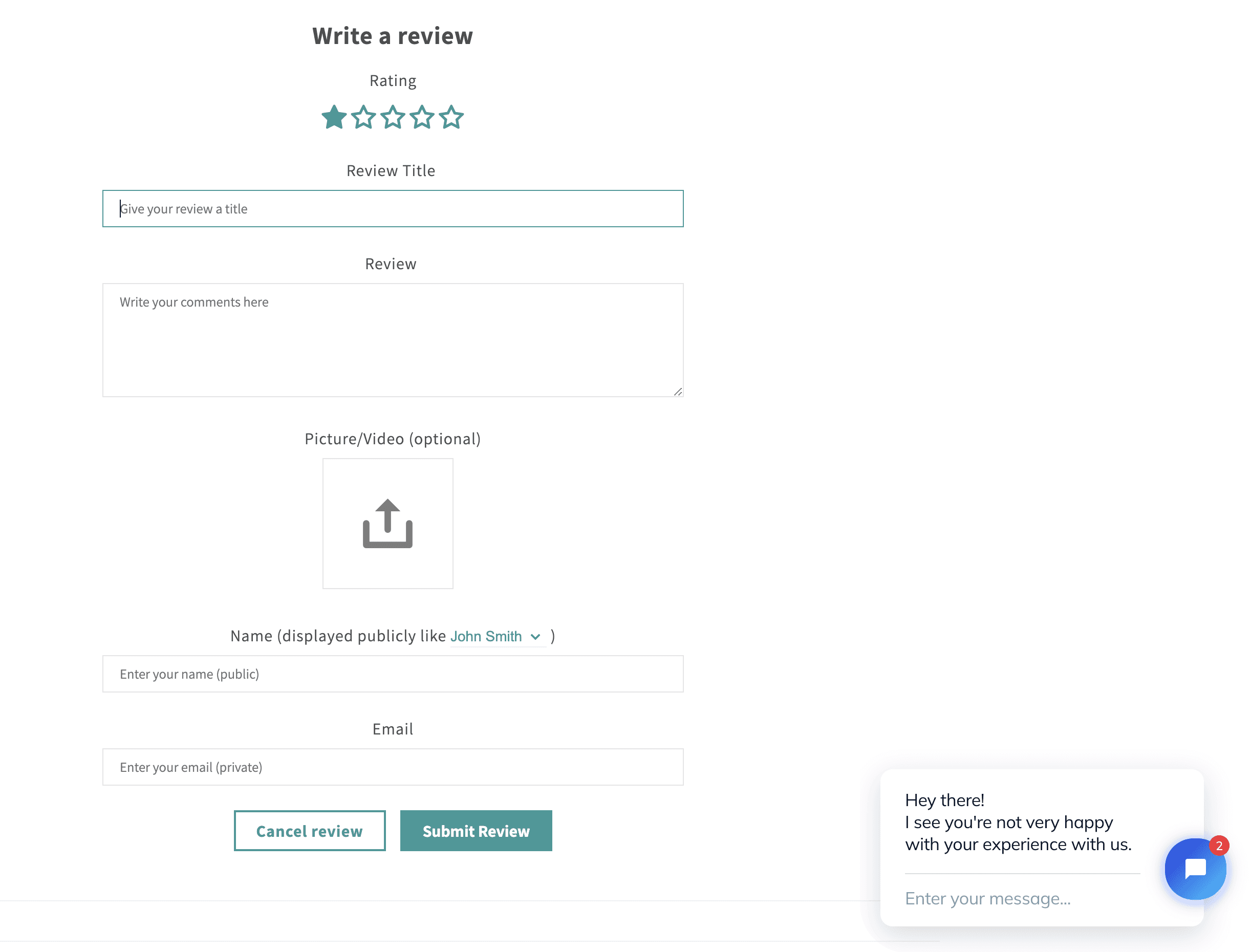 By reaching an unhappy customer at the right time, you can turn a bad experience into an opportunity. By using Tidio chatbot, you can trigger a message when your customers are about to submit a negative review. You can take this chance to understand what happened with your customers, and resolve the issues in time.