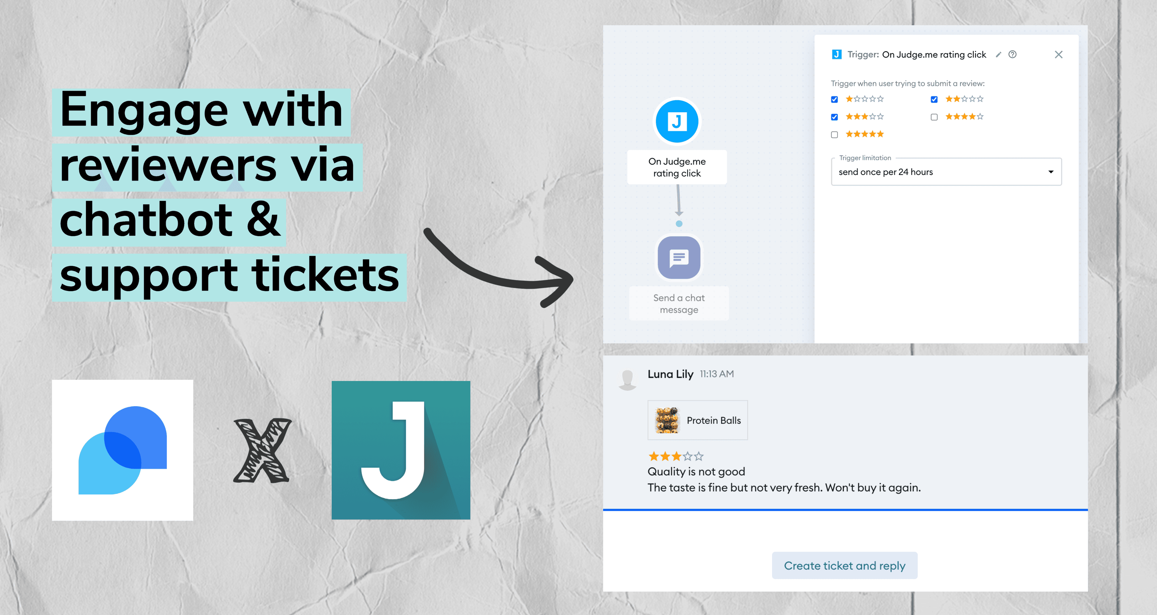 Need to quickly respond to your customers once they submitted a review? Or even more, try to resolve the issue before the reviews come in? Try our integration with Tidio, the #1 customer service tool for e-commerce to help you reach your customers 24/7. With this integration, you can engage with your reviewers by implementing some tasks that you may never think of: