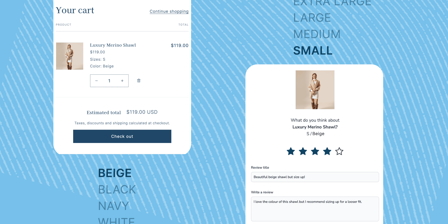 You can now benefit from this by adding product variant details to your review request emails and enabling product variants on your Shopify store's Review Widget and All Reviews Page.