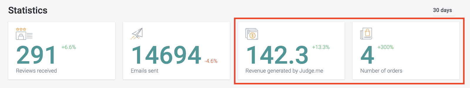 Number of orders and revenue generated from Judge.me are calculated based on the UTM parameters added to each link in your review request emails. This method helps Shopify identify any orders coming from Judge.me customers who read the review request emails. This insight gives you more concrete evidence of how Judge.me product reviews app contributes to the growth of your business.