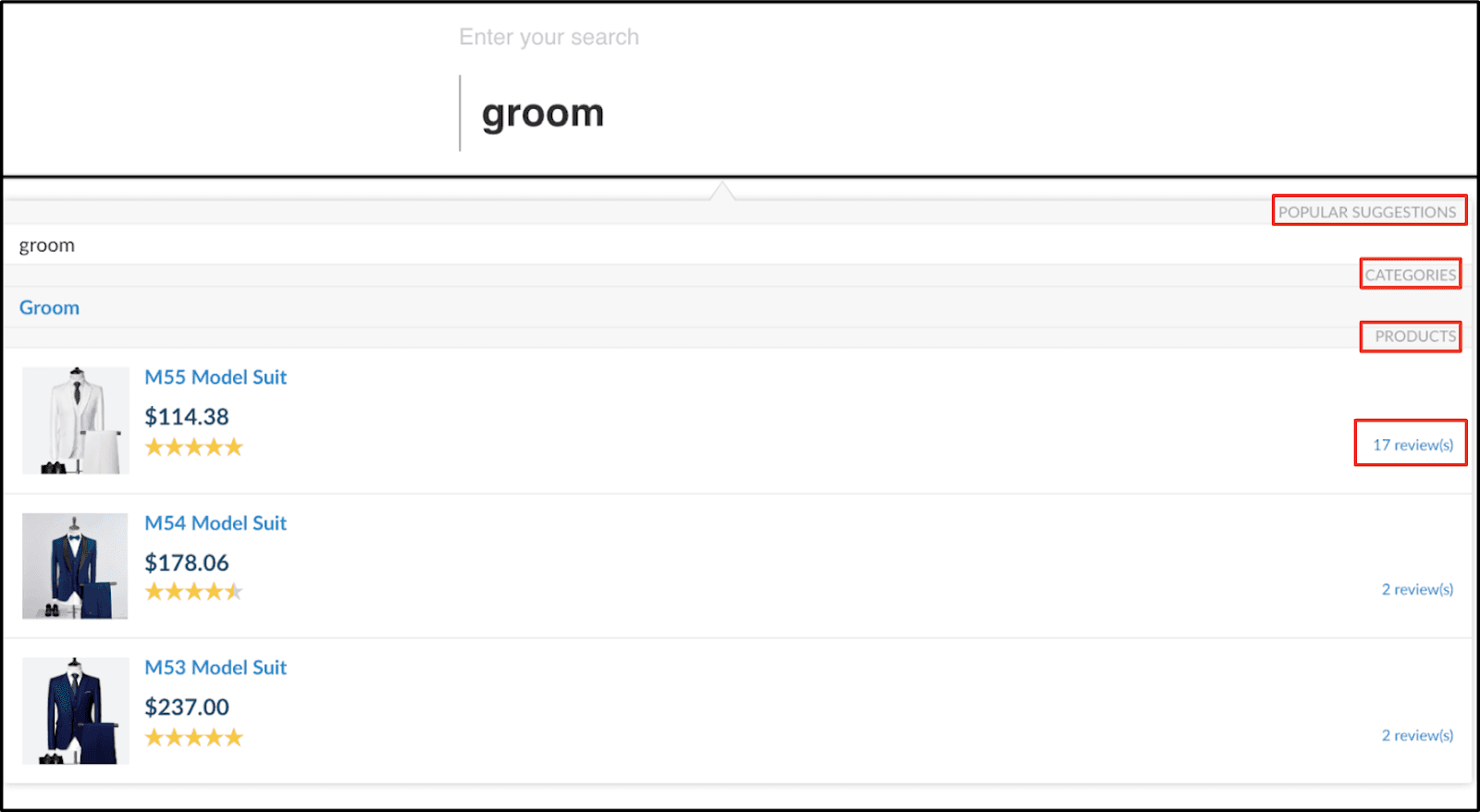 Show your product in Smart & Instant Search with its average rating and amount of reviews