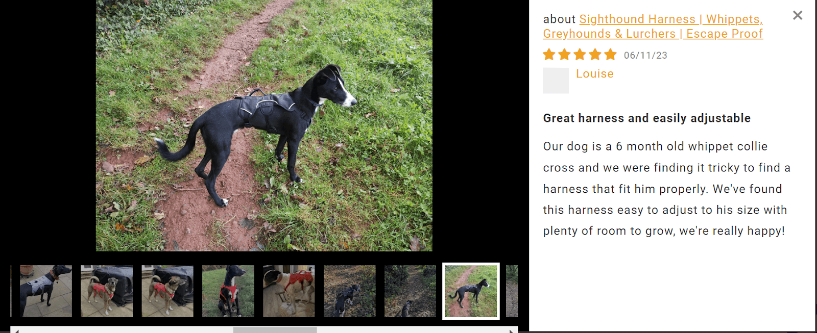 After doing some research, I found out this is actually a common problem with Sighthound breeds of dog like Blondie, due to their unique body shape which simply isn’t suited to traditional dog harnesses. So I set out to tackle the problem and created an escape-proof harness designed just for sighthounds and lurchers, taking all of their unique needs into account.