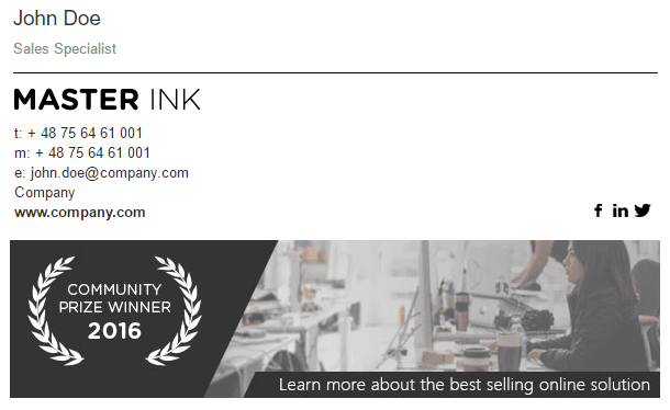 Got any awards or certifications for your products? Or endorsed by a reputable source in your industry? Show them to your potential customers! Your email footer is the best place to highlight these achievements.