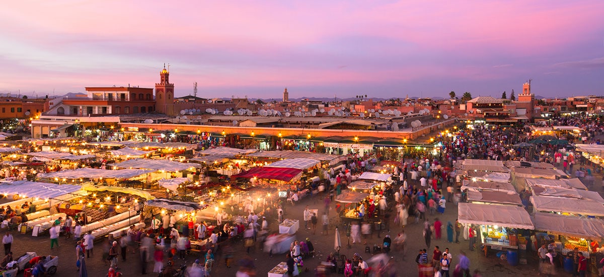 “It was my first day in the city of Marrakech,” Scott told me, “and my companions and I decided to brave the fabled Medina with its labyrinthine, narrow streets and alleys filled with souks (markets), cafes, workshops of all kinds, and so many people. Within minutes of entering its high walls, we were being cajoled and enticed to enter a showroom full of colorful djellabas (the traditional robes worn by many locals), scarfs, carpets, and much more.”