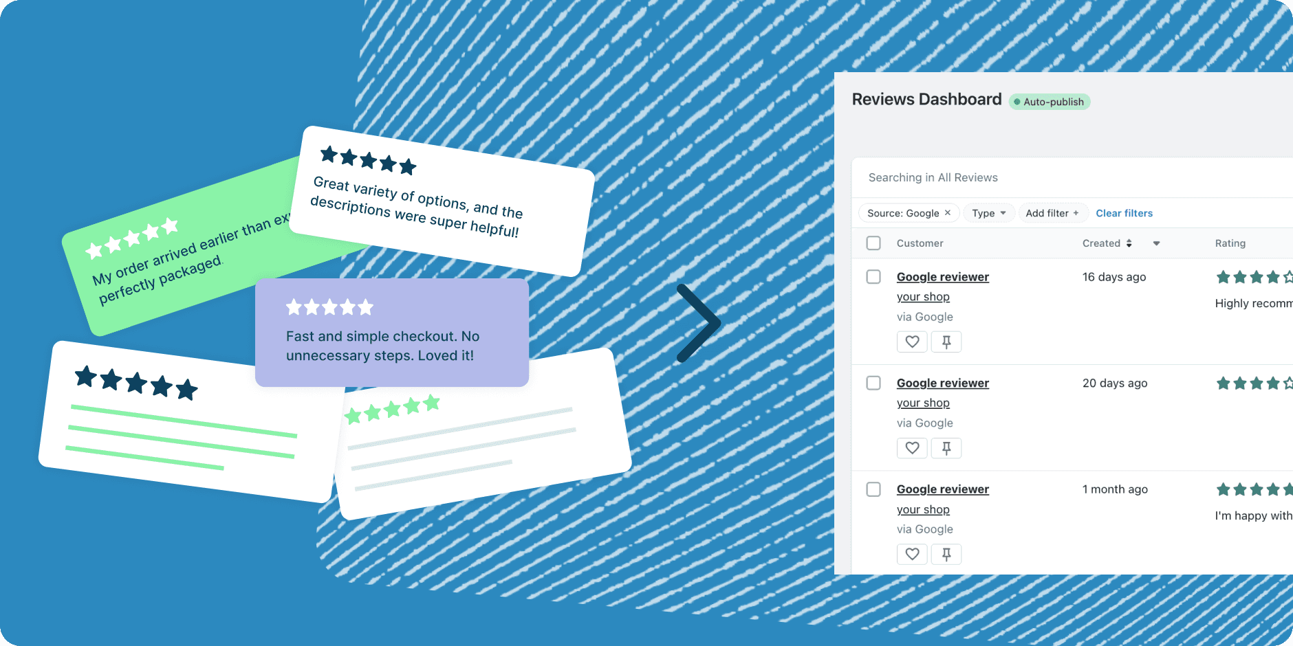 Whether you're just starting out or scaling fast, syncing Google Reviews helps you turn satisfied customers into your most persuasive advocates.